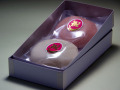 紅白祝餅(紅白)紅白共に約80gの重さがあります。紅色は色粉ではなく、身体に良い紅麹(漢方薬系)でピンク色に着色。紅白餅2個を真空パック包装して、白紙箱に入れてあります( ※写真では影で黒箱にみえますが、実際は白箱です)。